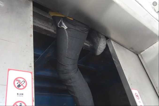电梯缝隙中伸出